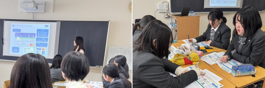 その後のグループワークでは、クレジットカードのメリットと注意点を整理し、将来を見据えた適切な使い方について意見交換を行いました。各グループで内容をまとめ、発表を通して学びを共有しました。