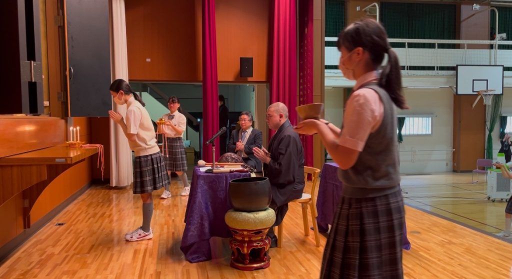厳粛な雰囲気の中でお経を唱え、お盆の成り立ちや命の大切さの話を聞くことができました。